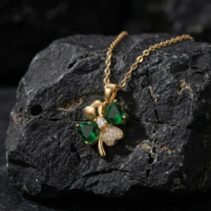 The four-leaf clover has been loved for centuries as a sign of luck. Each leaf is said to represent hope, faith, love and fortune. Wearing a clover necklace is often seen as a way to bring positive vibes into one’s day. The combination of green stones and golden tones gives the pendant a warm, uplifting look that fits the meaning behind it.